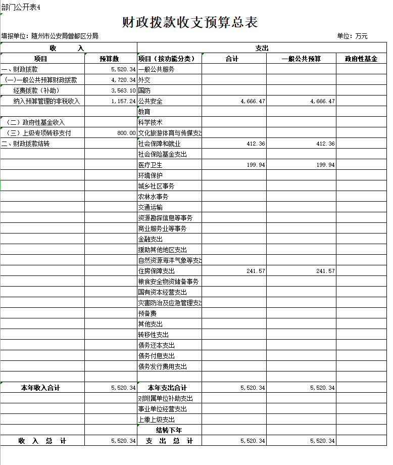 四、财政拨款收支总表