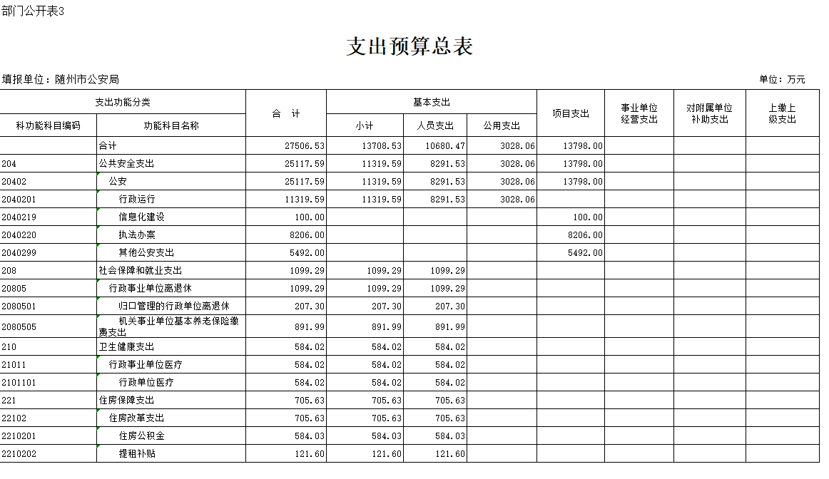 三、部门支出总表
