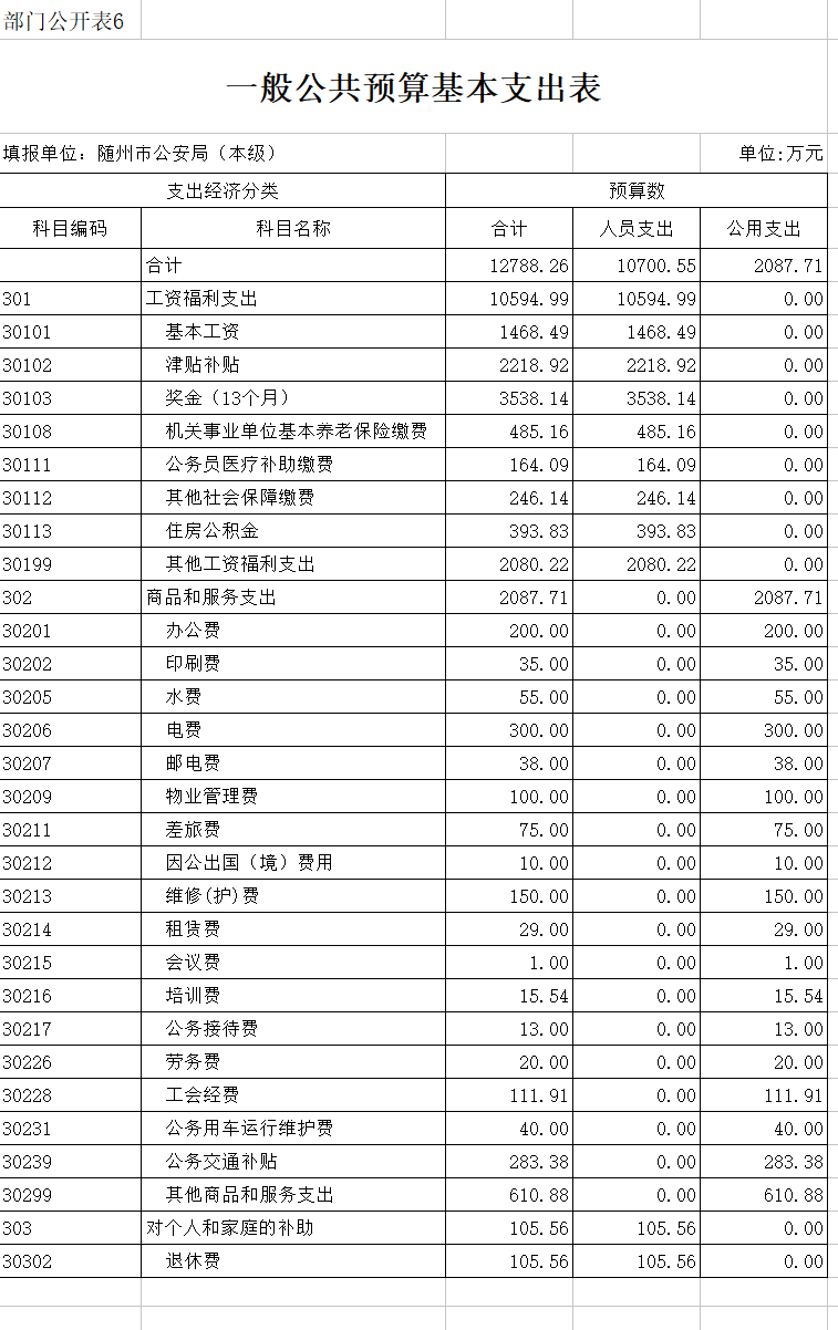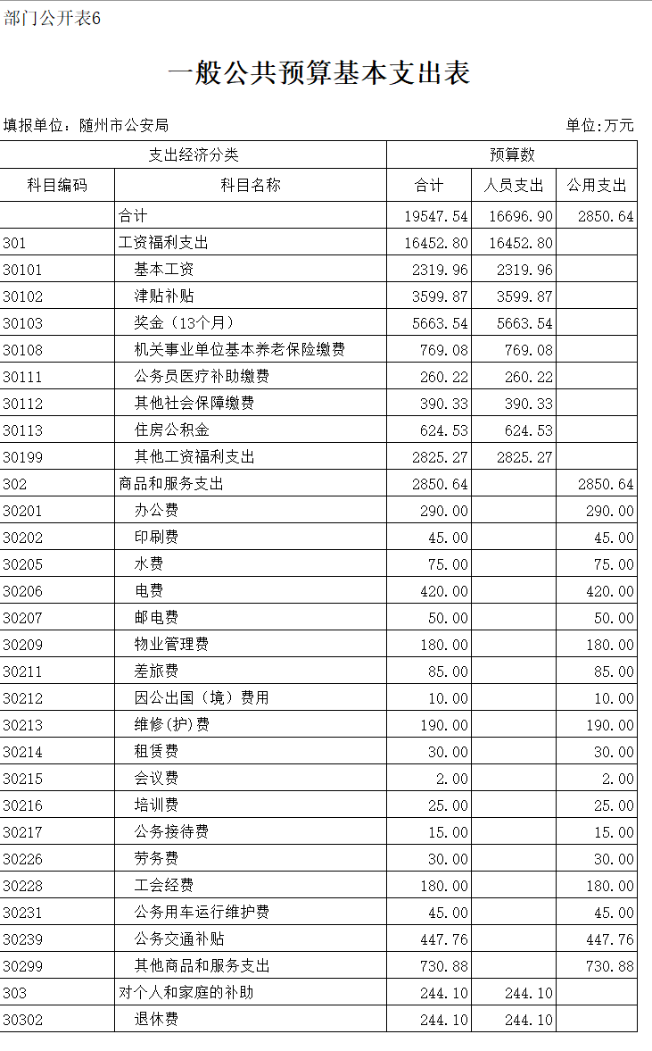 六、一般公共预算基本支出表(含一般公共预算基本支出表经济分类表)