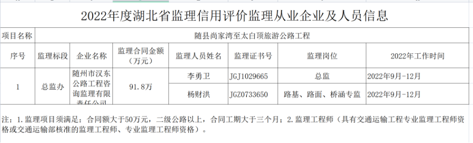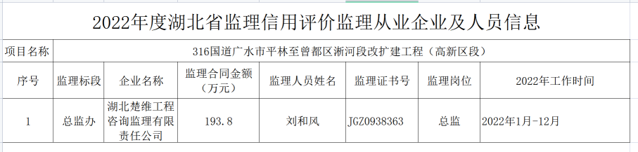 根据《厅质监局关于开展全省2022年度公路水运工程监理信用评价工作的通知》(鄂交质监[2023]12号)要求,按照交通运输部“应评尽评、防止漏评”的要求,经全面梳理2022年度辖区内各类公路建设项目,现将365bet官网注册_bat365app官网入口登录_365bet平台棋牌此次参与公路工程监理信用评价的从业企业和人员信息进行公示(见附表)。