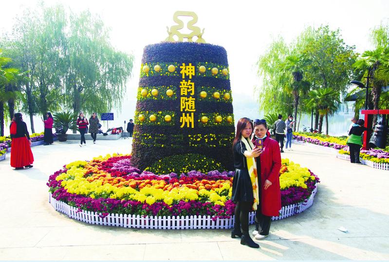 菊花展区,20余个品种近6万盆菊花,采用立体景点展示、造型菊艺小品、缤纷花道以及精品菊展示等形式,精心打造“神韵随州·国泰民安”、“欢庆二十大·永远跟党走”、“创新高地·产业新城”等12个特色主题展区,融入“编钟”“专汽”等随州地域文化元素。