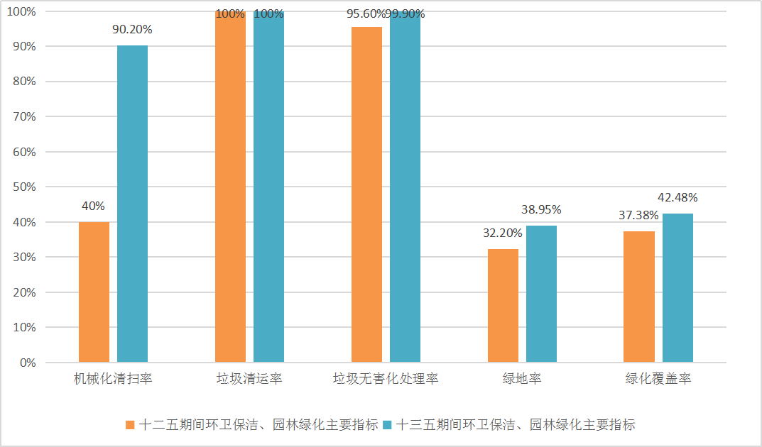 “十三五”期间,环卫作业机械化清扫率达到90.2%,比“十二五”时期增加50%;垃圾清运率达到100%,与“十二五”时期持平;垃圾无害化处理率达到99.9%,比“十二五”时期增加4%,环境卫生水平明显提高。城市绿地率达到38.95%,比“十二五”时期增加7%,绿化覆盖率达到42.48%,比“十二五”期间增加5%,城市生态颜值不断提高。“十三五”期间,围绕“品质随州”、“寻根节”、“城乡环境秩序综合整治”、“铁路沿线环境综合整治”等环境综合整治任务,坚持“因地制宜、放管结合、堵疏结合”,切实在市容整治、环境卫生、停车管理、垃圾处置、户外广告整治等方面下功夫,市容秩序有了明显改观。“十三五”期间,深入践行绿色发展理念,“城市双修”持续推进,市政设施扩容改造步伐加快,城市功能不断完善;“十三五”期间,实施了城市管理和综合执法行政体制改革,进一步理顺了机构职责,推进了城市管理重心下移、力量下沉;“十三五”期间,数字城管和智慧城管实现跨越式发展,城市管理提质增效,城管执法事业进一步向科学化、法治化、精细化、智能化道路迈进。