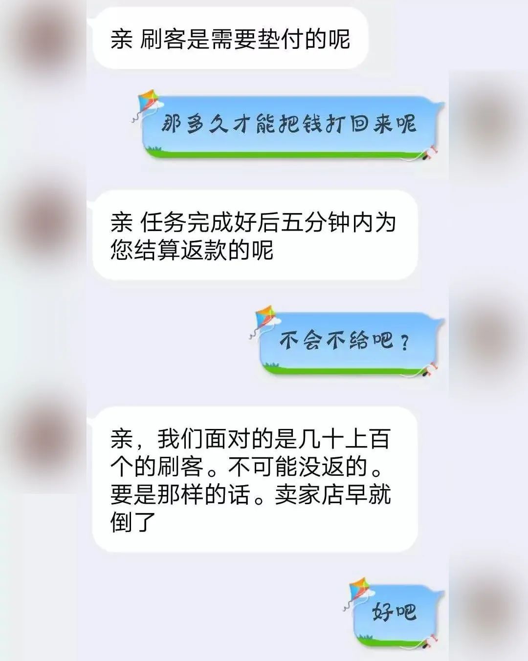 当你进行到“工作”这步时,骗子会先给些甜头,第1、2单会按照约定支付货款和酬劳,骗得你的信任,目的是让你加大投入,多刷多赚。