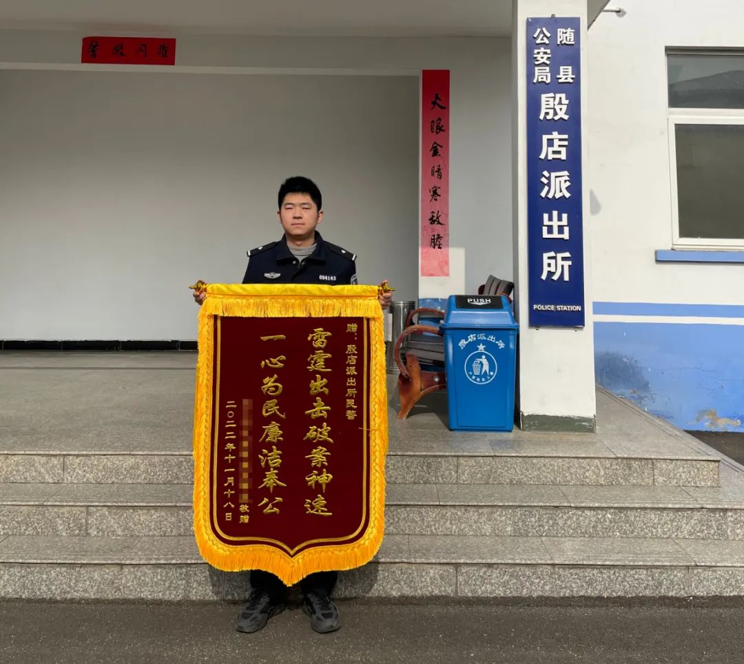 2022年3月,殷店派出所在办理某刑事案件时抓获犯罪嫌疑人王某,查明犯罪事实,并依法对其采取取保候审强制措施。在打击犯罪的同时,民警也注重教育与惩处相结合的原则,对王某普及法律知识,帮助其正确认识自己,改过自新。王某经教育后表示将痛改前非,并对民警及时将他从歧路上拉回表示感谢,特意在网上定制锦旗邮寄到殷店派出所。