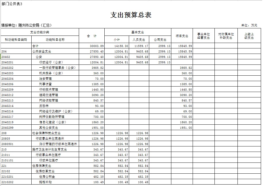3、支出预算总表