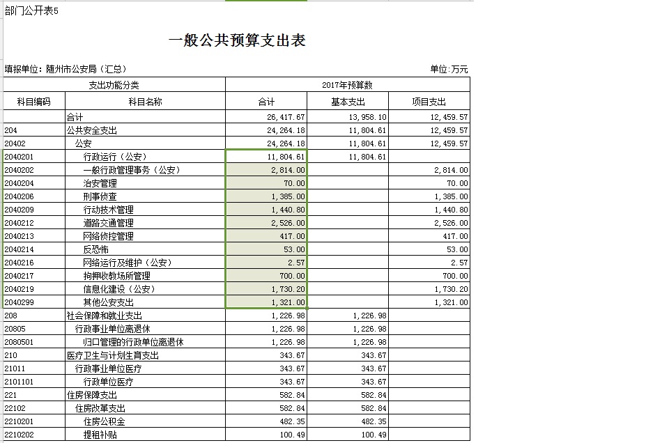 八、公安(20402款):反映公安事务及管理支出。