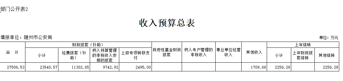 二、部门收入总表