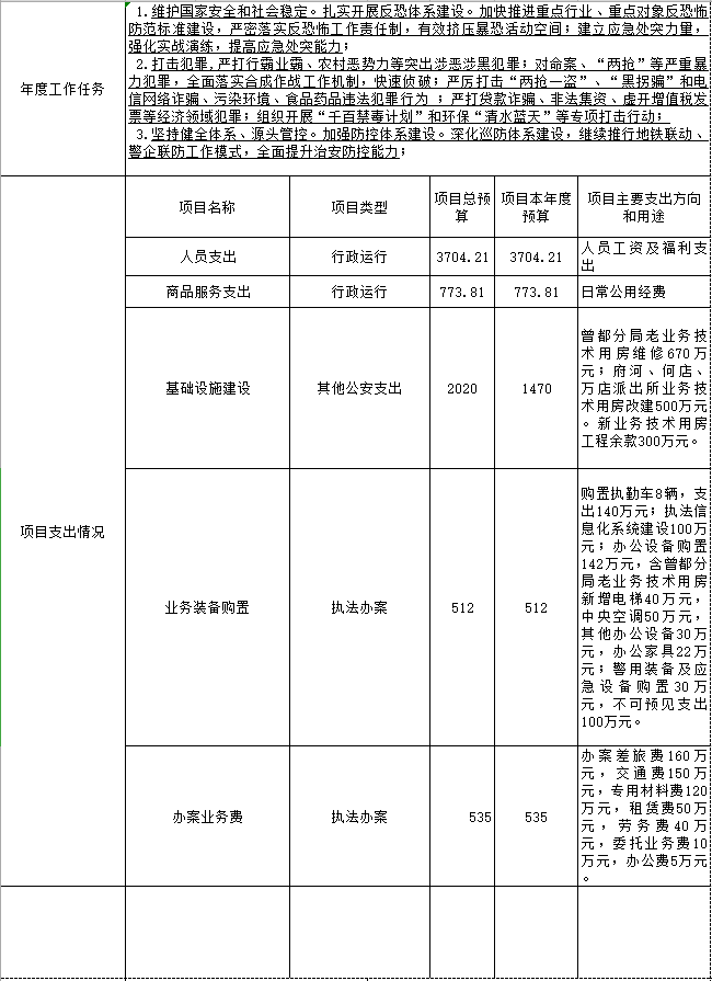 十、执法办案(公安)(2040220项):反映公安机关从事行政执法、刑事司法及侦查办案等相关活动的支出。