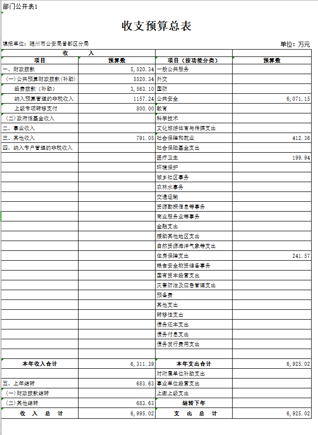 一、部门收支预算总表