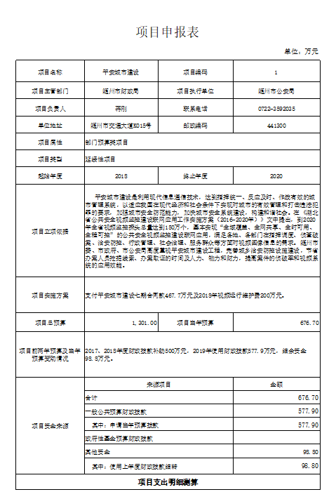 曾都分局涉案财物及业务技术用房维修(老办公楼)2019年预计支出670万元,使用结余资金550万元,其他收入120万元。