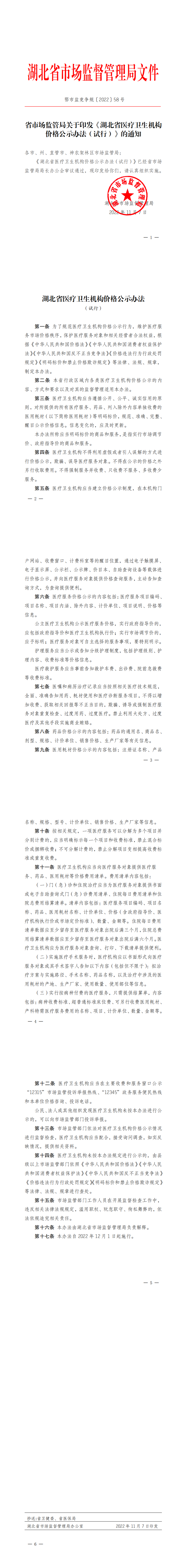 省市场监管局关于印发 《湖北省医疗卫生机构价格公示办法(试行)》的通知