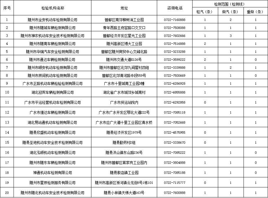 按照《中华人民共和国大气污染防治法》和原环境保护部、公安部、中国国家认证认可监督管理委员会《关于进一步规范排放检验加强机动车环境监督管理工作的通知》(国环规大气〔2016〕2号)及湖北省生态环境厅、湖北省交通运输厅、湖北省市场监督管理局《关于建立汽车排放检验与维护制度的实施意见》(鄂环发〔2020〕54号)要求,为做好我市机动车环保定期检测工作,本着便民、公开的原则,现对我市已获得资质认定(计量认证)证书,设备依法检定合格,并与生态环境部门实时联网的机动车排放检验机构名单予以公示(排名不分先后),广大车主可任意选择以下排放检验机构进行机动车尾气检测。咨询投诉电话:0722-3312658,3313016。