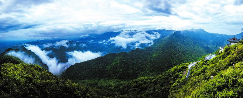 宝珠峰海拔1055米,是大洪山最高的山峰,也是楚北大地迎接晨曦的第一缕阳光的地方。重建的大慈恩寺金顶位于峰顶,巍峨雄伟,气势辉煌。登临其上,不仅可以观日出,赏夕阳,还可以看云海。凭栏览胜,远近风光尽收眼底,既无车马之喧,也无杂事纷扰,让人澄心涤虑、神清气爽。