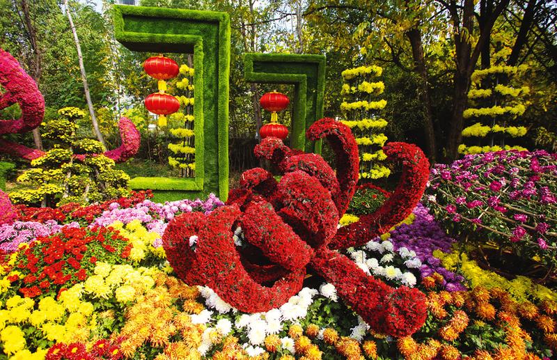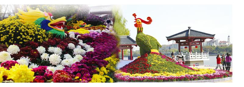 菊花展区,20余个品种近6万盆菊花,采用立体景点展示、造型菊艺小品、缤纷花道以及精品菊展示等形式,精心打造“神韵随州·国泰民安”、“欢庆二十大·永远跟党走”、“创新高地·产业新城”等12个特色主题展区,融入“编钟”“专汽”等随州地域文化元素。