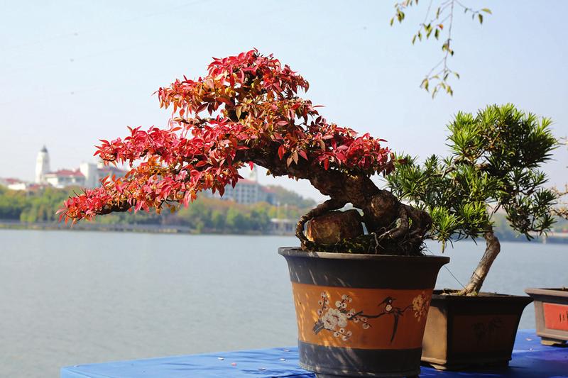 盆景园区,由松柏榆枫等树种制作的500余盆盆景,或虬曲多姿,或清秀古雅,不时获得观众的称奇赞叹。