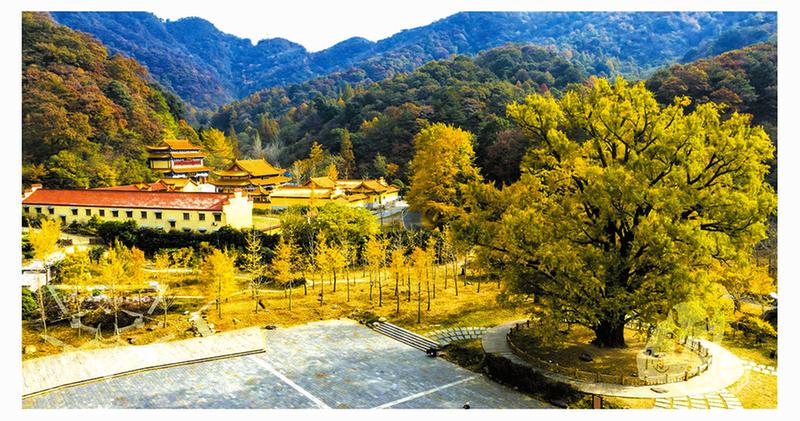 从古道中走出来,眼前豁然开朗,在千年银杏广场上,有一棵树龄近三千年的银杏古树,这棵古银杏树高38米、直径2.61米,树冠荫笼面积400多平方米,树围8.2米,是中国目前仅存的4株树龄最长的树之一,被称为“华中银杏第一树”。