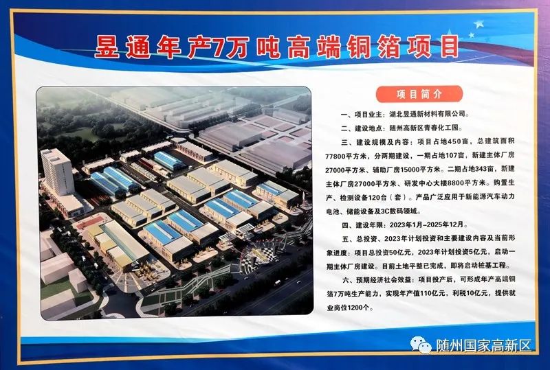 其中昱通年产7万吨高端铜箔犇星新材料等重大项目投资规模大、发展前景好带动能力强将为随州加快打造城乡融合发展示范区划下浓墨重彩的一笔