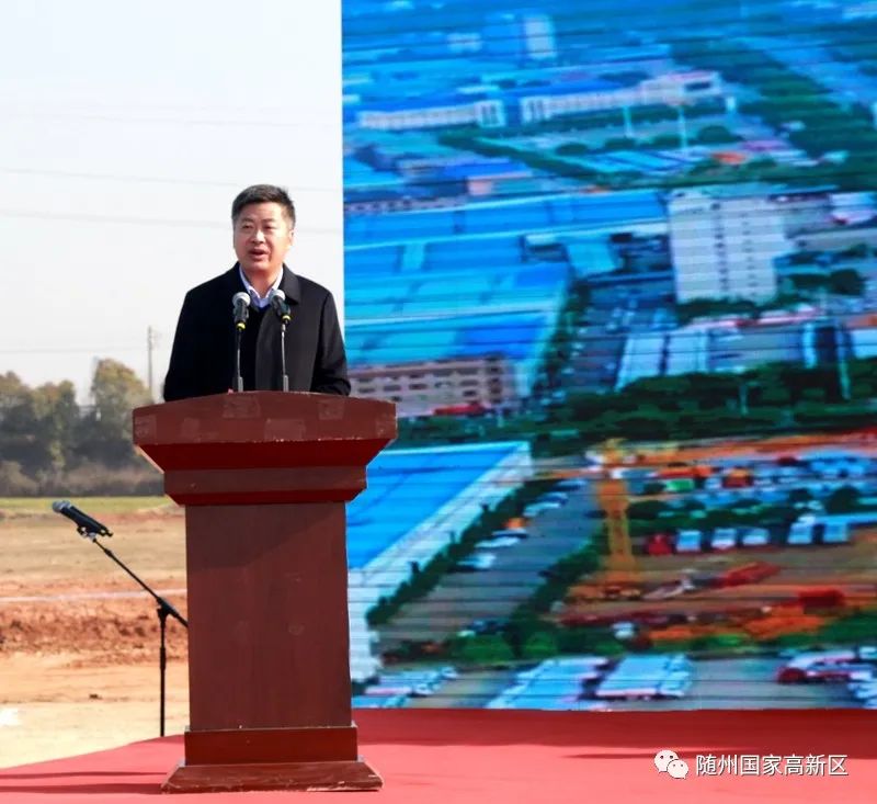 随州高新区党工委书记、管委会主任郭晓东在会场致辞,他说,人勤春来早、奋进正当时!新春伊始,我们怀着无比喜悦的心情,再次相聚在这引擎轰鸣、项目全开的随州青春化工园项目集中开工现场。今天,高新区集中开工的共29个项目,总投资227.5亿元。