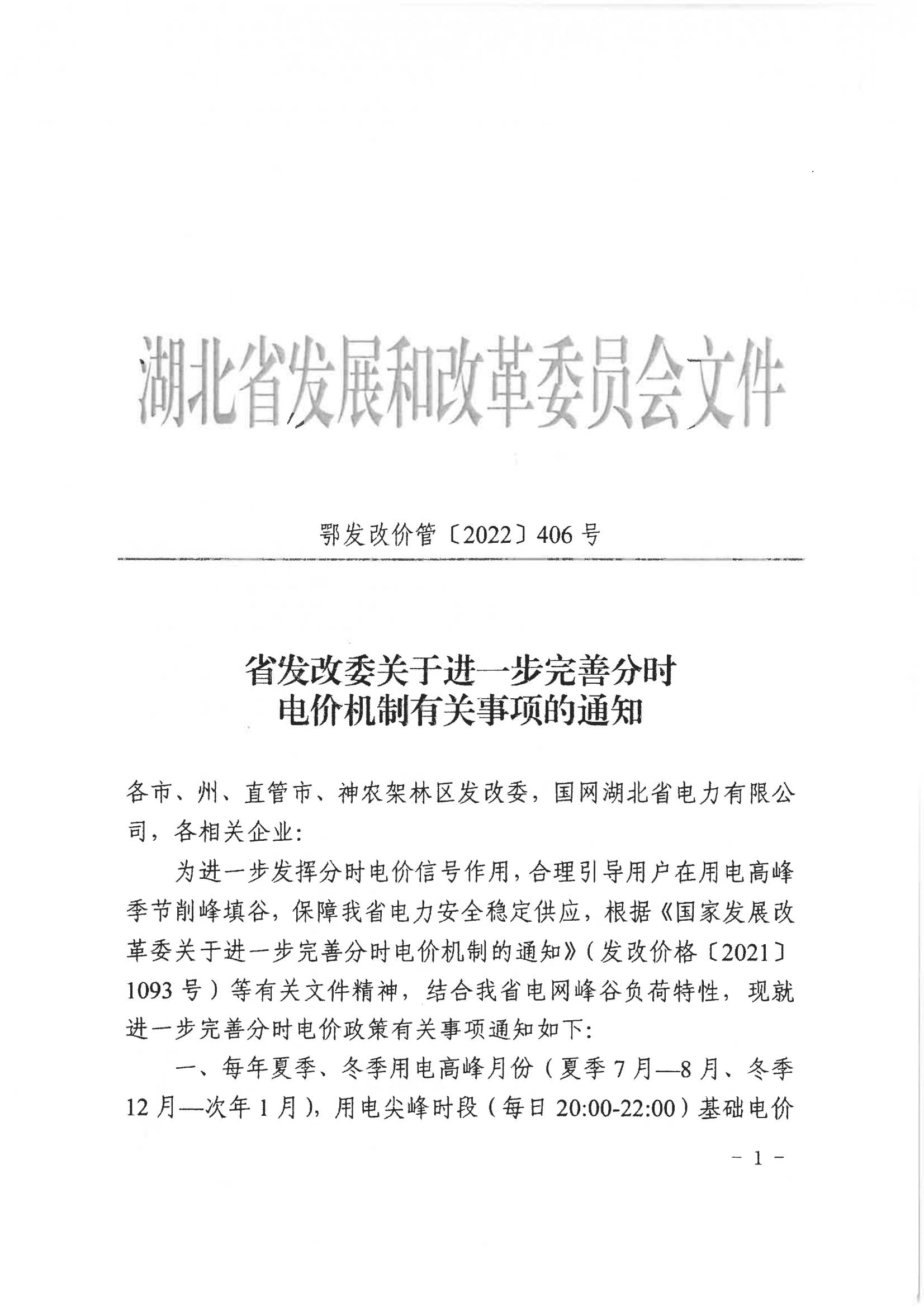 市发改委关于转发《省发改委关于进一步完善分时电价机制有关事项的通知》的通知