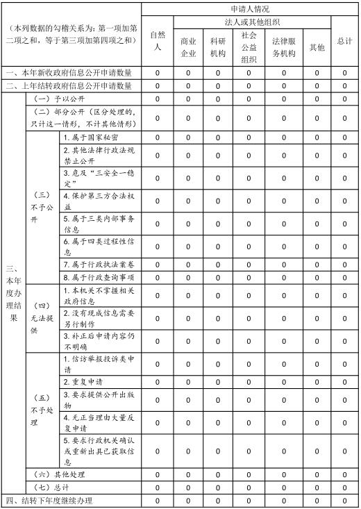 建立了依申请公开工作机制,向社会公开了申请方式,今年未收到任何要求公开政府信息的申请,依申请公开数为0件。
